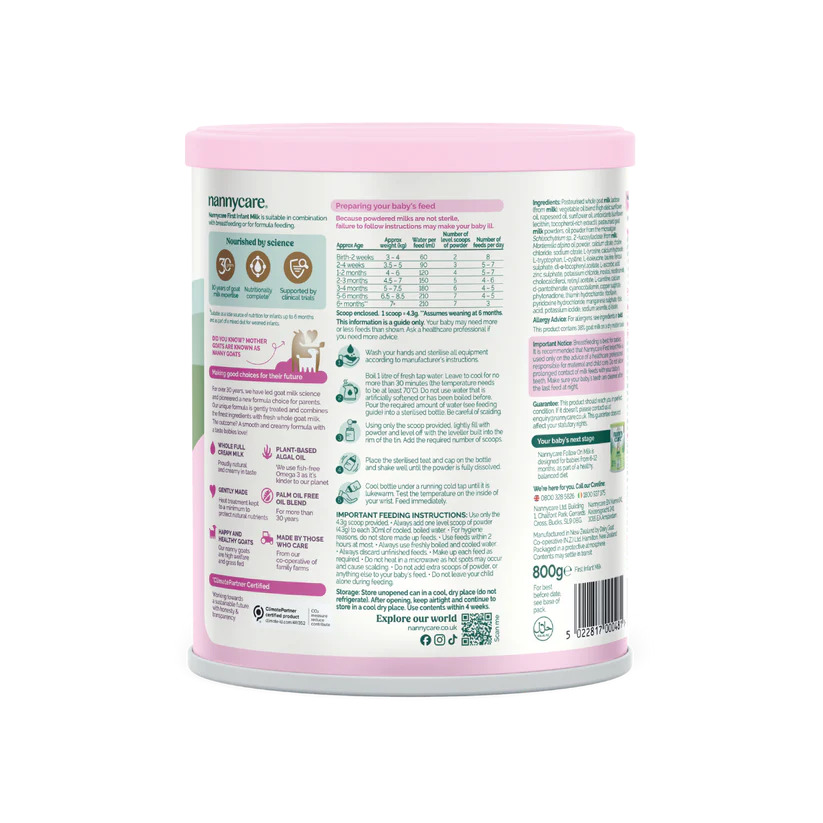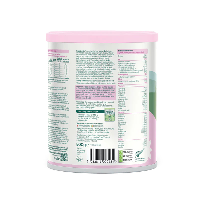 单件装 [新]英国Nannycare纳尼凯尔婴幼儿羊奶粉1段 0-6个月 800g【配方升级,含HMO】
