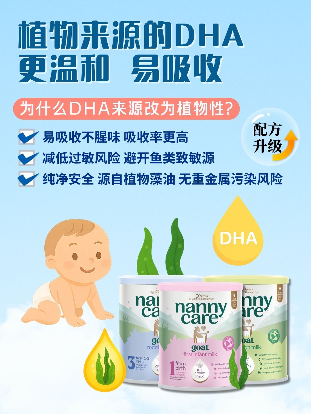 单件装 [新]英国Nannycare纳尼凯尔婴幼儿羊奶粉2段 6-12个月 800g【配方升级,含HMO】